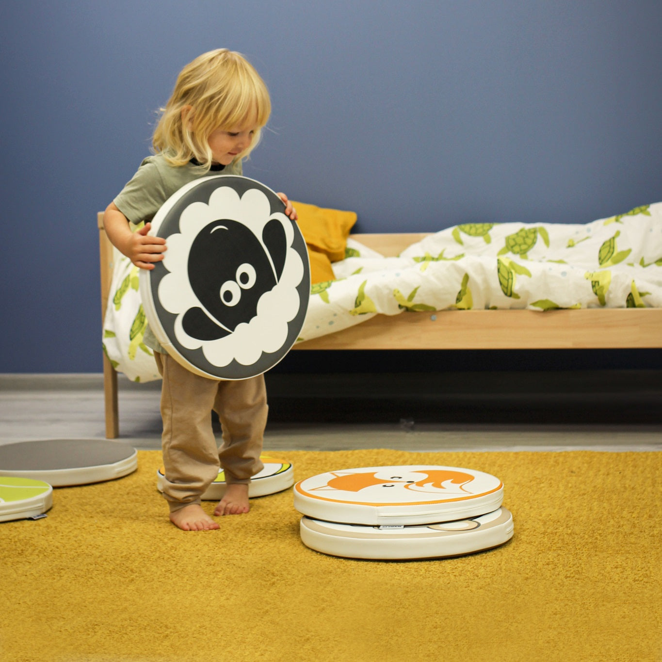 Diese runden Kissen aus weichem Schaumstoff sind mehr als nur bequeme Sitzgelegenheiten für die Kleinen – sie sind Bausteine, die Kreativität und spielerisches Lernen fördern.