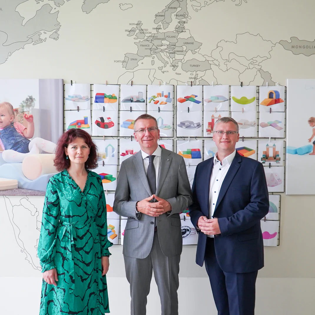 Vizītes laikā prezidents E. Rinkevičs veltīja laiku, lai aprunātos ar mūsu talantīgajām šuvējām, kuras ir mūsu ražošanas procesa sirds un dvēsele. Katru dienu šie prasmīgie amatnieki rūpīgi izgatavo un pārbauda katru apģērba gabalu, nodrošinot, ka tas atbilst augstākajiem kvalitātes standartiem, pirms tas kļūst par gatava komplekta daļu. Pēc tam šie ar mīlestību darinātie produkti tiek rūpīgi iepakoti un nosūtīti, lai sniegtu prieku bērniem visā pasaulē.